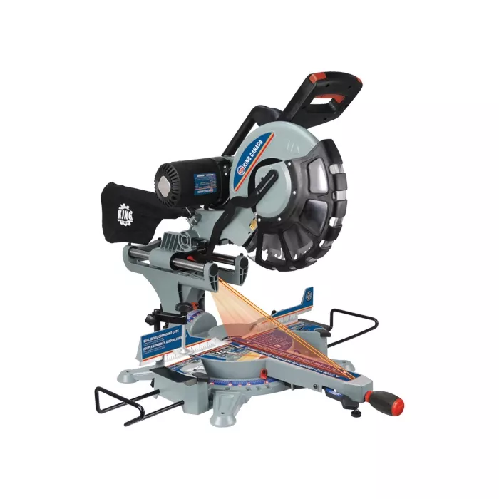 - Comprend : (1) pince-étau à 2 positions verticales, (1) pince-étau à 2 positions horizontales, (1) rallonge escamotable, (1) sac à poussière, (1) clé à douille pour lame, (1) lame à pièces rapportées au carbure avec 60 dents