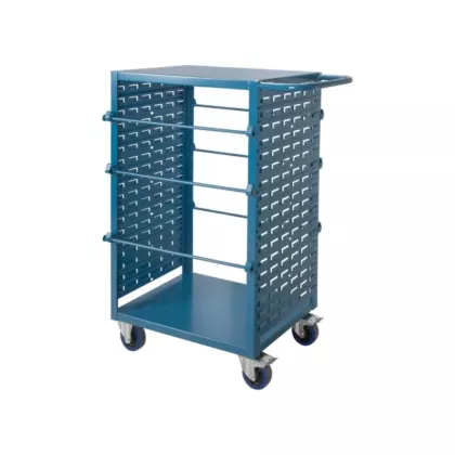 - Roulettes de 5" en caoutchouc bleu non marquant; deux fixes et deux pivotantes avec frein