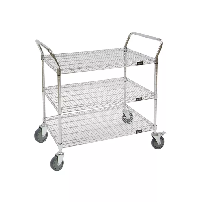 - Comprend: roulettes de 5" en caoutchouc élastique (deux pivotantes et deux avec frein)
