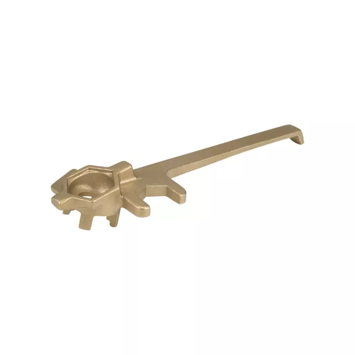 - Alliage de laiton antiétincelles, ouvre la plupart des barils y compris ceux avec bouchons carrés ou hexagonaux, boulons mâles ou femelles ou avec des bouchons et raccords avec anse ou barre