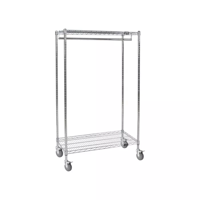 - Présentoir à vêtements sur roulettes permettant d'optimiser l'espace.