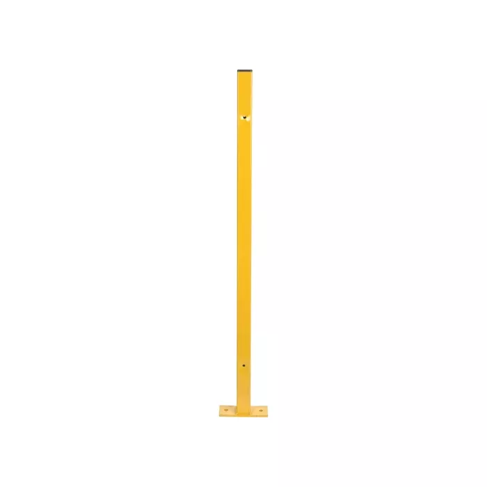 - Les montants sont fabriqués en tube carré de 2" avec une plaque de base de 5/16" avec des trous pour les boulonner au plancher