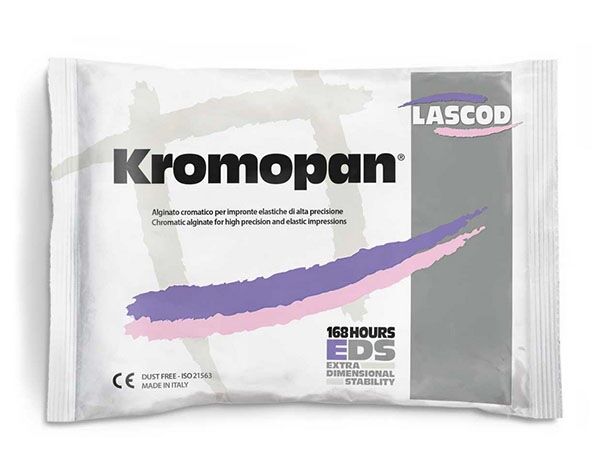 Impressions taken with Kromopan will remain dimensionally stable over 100 hours if stored in a Safe-lock Bag without adding water, wet paper or wet cotton. When necessary, Kromopans working time can be extended with Personal Krono liquid. The liquid does not change Kromopans physical properties or the in-mouth minimum setting time.