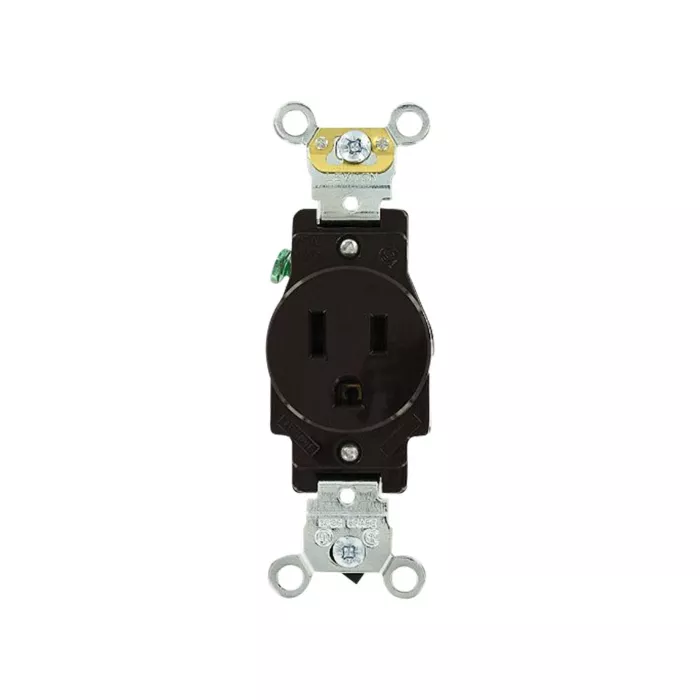 Leviton Prise simple de calibre industriel, Brun, 15 A, 125 V, 1 Nbre de prises de courant, Violable (5261)