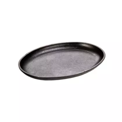 The 10 Inch Oval Serving Griddle has slightly raised edges keep oil, batter, and other ingredients neatly contained. Experience excellent heat distribution and retention for consistent, even cooking. Seasoned and ready to use.