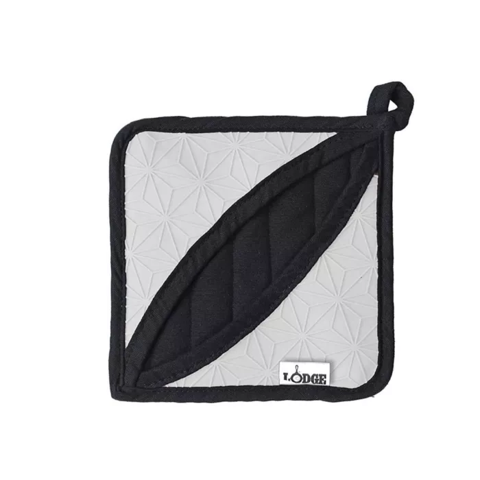 Protect hands and surfaces in style with this silicone and fabric potholder. The fabric lining provides a comfortable grip while the silicone exterior offers maximum heat and stain resistance.