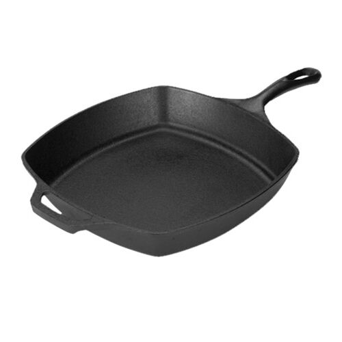 The Lodge Square Skillet maximizes the cooking area for bacon strips, four burgers or French toast. It's great for baking unique cakes as well. Sauté, sear, fry, bake and stir fry to heart’s content. Ready to use Seasoned Cast Iron - Lodge sprays vegetable oil onto the cookware, then bakes it on at high temperatures to create a natural, easy-release cooking surface. Can be used on all cooking surfaces and is oven safe. Made in USA. 10-1/2" square., 1-3/4" depth