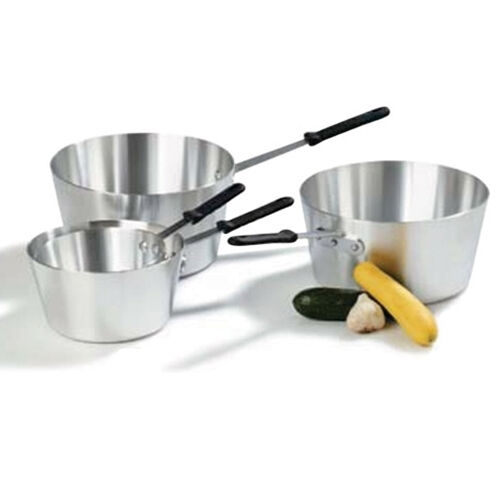 Developed to meet rigid industry standards. Sauce pan, tapered aluminum. 10.6''Dia. x 5.7''H. 9 gauge, 3mm thick. 1100 series aluminum for maximum heat conductivity.