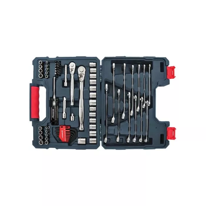 - Includes: 32 Sockets, 2 Extensions, 2 Ratchets, Adapter, Bit Driver & Bits, 8 Hex Keys, 12 Combination Wrenches