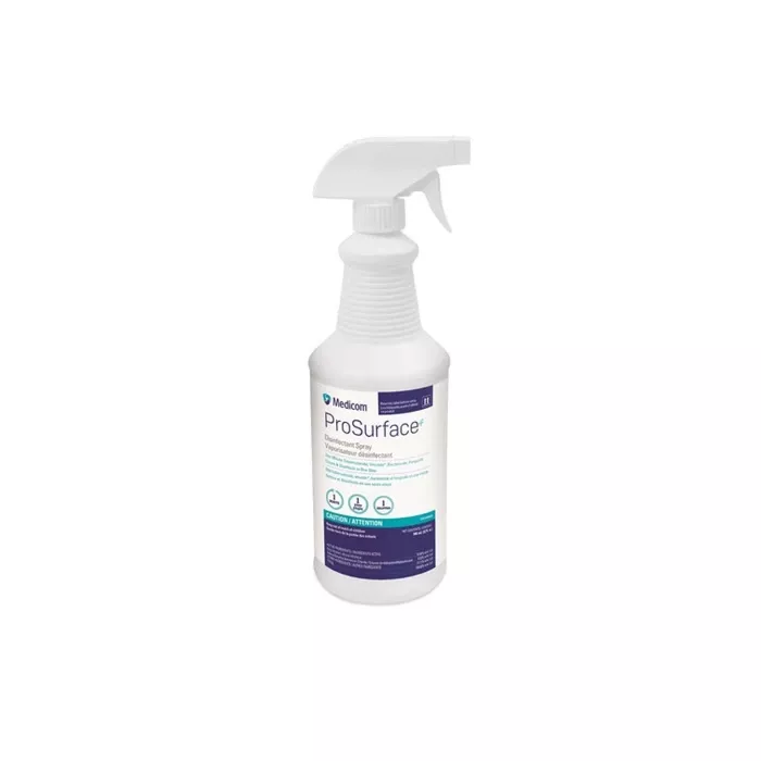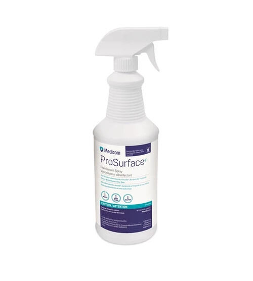 Medicom Pro-Surface disinfectants, with proprietary TotalClean technology, provide powerful one-step cleaning and disinfection in a best-in-class contact time of justone minute.* Pro-Surface eliminates 48 pathogens, including bacteria, viruses and fungi, without damaging surfaces. Available in two convenient formats: wipes for cleaning between patients and spray for a more thorough end-of-day cleaning. *Treated surface must remain visibly wet for one minute - 1-minute surface contact time accelerates workflow and reduces patient transition time - 1-step cleaning and disinfection reduces the risk of cross-contamination for safer dental visits - Broad spectrum bactericidal activity eliminates 48 pathogens, including bacteria, viruses and fungi - Available in wipes and spray, convenient wipes are ideal for cleaning between patients; spray is ideal for more thorough end-of-day cleaning - Low toxicity profile will not damage non-porous instruments or surfaces; no special handling/protective eyewear required - Fragrance-free formula increases compliance without disrupting office operations - Low quaternary ammonium content - Does not leave residue on surfaces - Durable, extra-strong wipes means each wipe covers a large surface area, minimizing consumption; leave no lint residue Active ingredients: Ethyl Alcohol 72.5% and Didecyl Dimethyl Ammonium Chloride 0.33