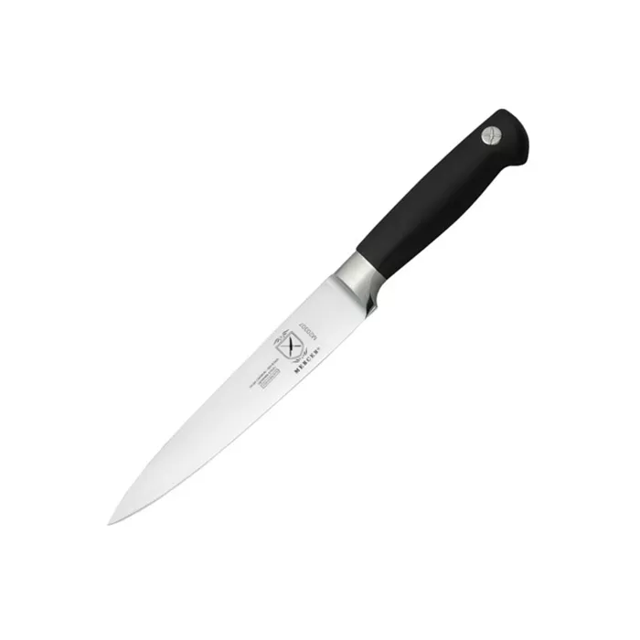 This razor sharp line takes cutlery to a new level of quality and value. The best handle in forged cutlery. A perfect blend of modern technology and finely crafted German steel. Limited lifetime warranty. NSF listed. Ergonomic Santoprene® handle offers superior comfort and a non-slip grip, even with wet hands. Will not break down from exposure to kitchen oils and is able to withstand hot and cold temperatures. Bolster strengthens the knife, adds durability, and provides excellent balance for better handling when cutting food. Precision forged construction for better strength and durability. High carbon, no-stain German cutlery steel resists rust, corrosion and discolouration. Taper-ground edge allows for added stability, easy honing, long lasting sharpness, and increased efficiency when cutting and chopping. Full tang runs the entire length of handle for superior balance.