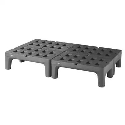 Each rack provided with separate polymer tie for joining racks in “end-to-end” and “back-to-back” configurations. Rack has a recess centered each side of top surface to accept polymer tie.