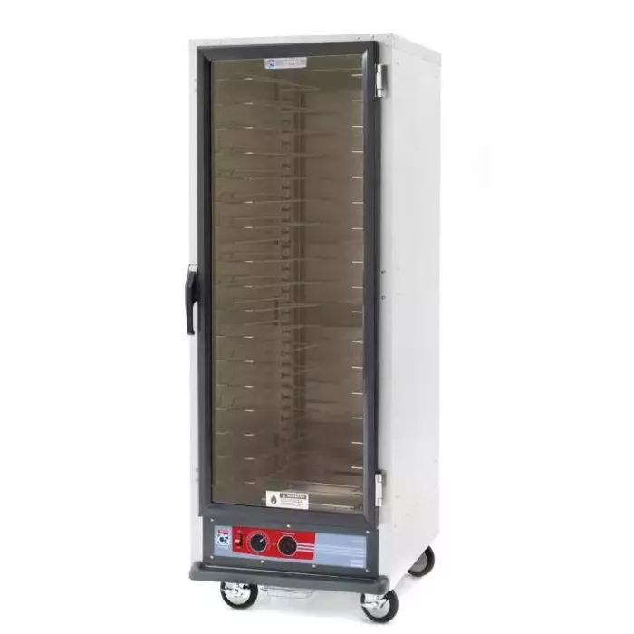 Full-height, non-insulated holding cabinet. Entire module is removable without tools for easy cleaning and servicing. Clear polycarbonate doors provide visibility of the contents inside the cabinet without the heat loss associated with opening the door. Metro Heated Holding Cabinets are for hot food holding applications only.