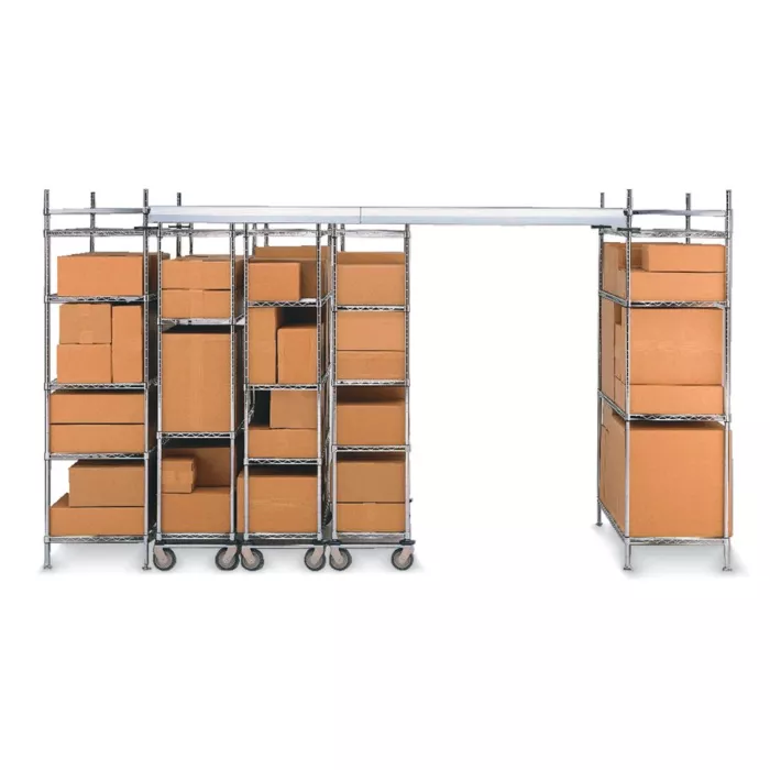 Includes necessary sections of track for assembling track runs of 6' to 21' (1830-6405mm). Only one track set is required between stationary units. 11 feet length. Position on top.