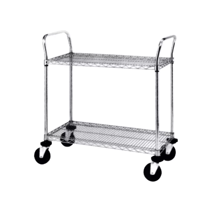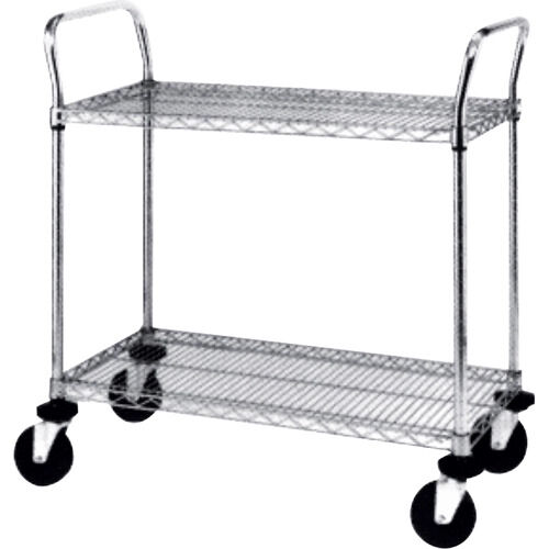 - Les chariots comprennent deux tablettes en trellis avec manchon de raccordement en plastique, deux poignées monoblocs et le pare-chocs