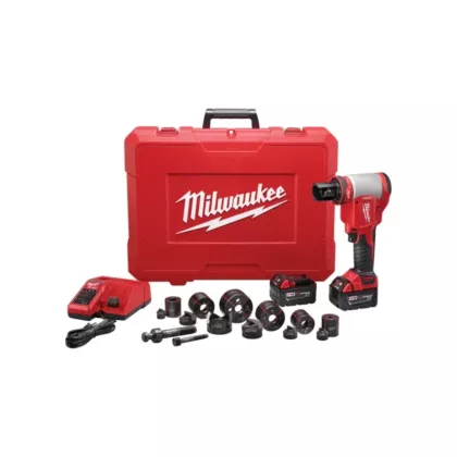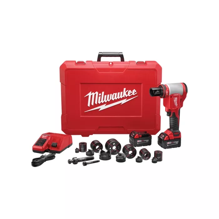 - Comprend : deux blocs-piles à grande capacité M18(MC) REDLITHIUM(MC) XC, chargeur multitension, matrice en acier inoxydable EXACT(MC) de 1/2'', emporte-pièce en acier inoxydable EXACT(MC) de 1/2'', matrice EXACT(MC) de 3/4'', emporte-pièce EXACT(MC) de 3/4'', matrice EXACT(MC) de 1'', emporte-pièce EXACT(MC) de 1'', matrice EXACT(MC) de 1 1/4'', emporte-pièce EXACT(MC) de 1 1/4'', matrice EXACT(MC) de 1 1/2'', emporte-pièce EXACT(MC) de 1 1/2'', matrice EXACT(MC) de 2'', emporte-pièce EXACT(MC) de 2'', goujon de tirage de 7/16'', goujon de tirage de 3/4'', raccord, accessoire à connexion rapide et mallette de transport