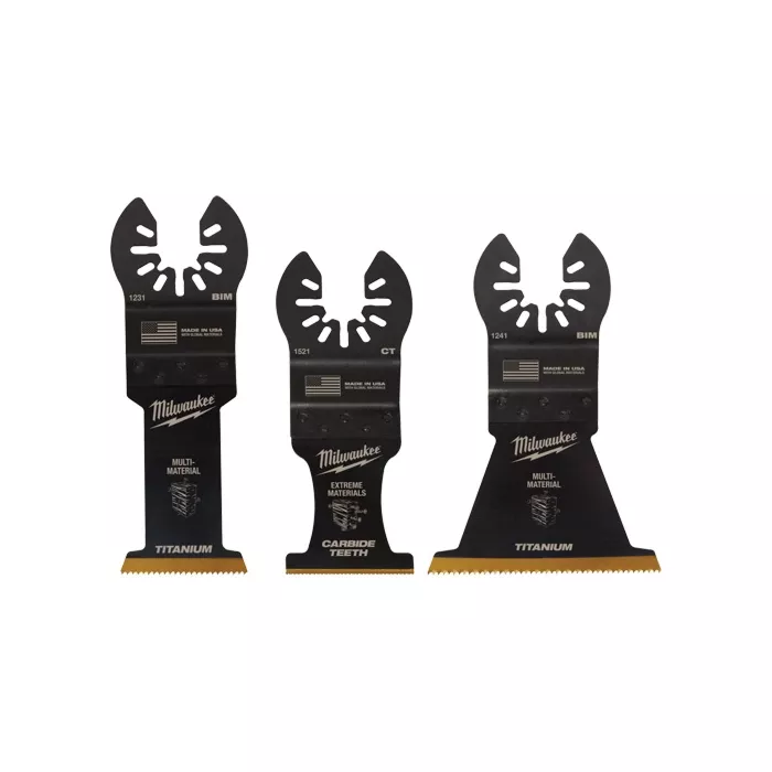 - Comprend : (1) lame multimatériau Open-Lok(MC) en bimétal renforcé au titane de 1-3/8", (1) lame multimatériau Open-Lok(MC) en bimétal renforcé au titane de 2-1/2", (1) lame multimatériau Open-Lok(MC) à denture au carbure renforcée au titane de 1-3/8"