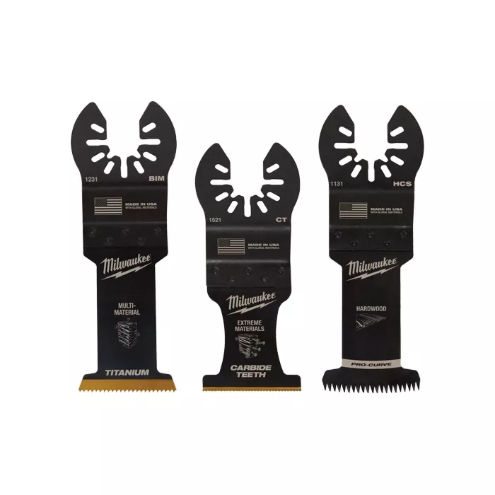 - Comprend : (1) lame Open-Lok(MC) à denture japonaise Pro-Curve(MC) en acier à haute teneur en carbone de 1-3/8" pour coupe de bois dur, (1) lame multimatériau Open-Lok(MC) renforcé au titane de 1-3/8", (1) lame Open-Lok(MC) à denture au carbure renforcée au titane de 1-3/8"