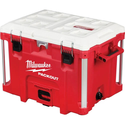 - Ouvre-bouteille intégré et plateaux de rangement sous la glacière pour une polyvalence maximale sur et hors du chantier, avec une surface extérieure sans suintement