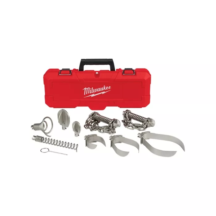 - Comprend : coupe-racines 3 po, coupe-racines 4 po, coupe-racines 6 po, outil de dégagement petit format, outil de dégagement moyen format, chaîne de dégorgement 3 po, chaîne de dégorgement 4 po, vis sans fin droite, vis sans fin avec entonnoir, goupille, mallette de transport