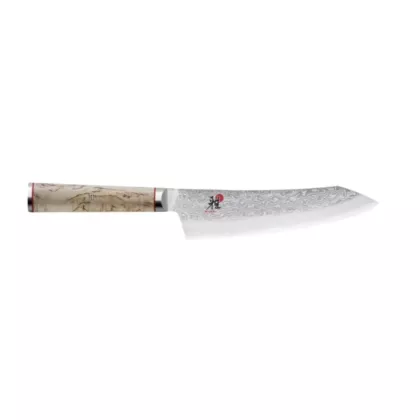 Top-of-the-line MIYABI Birchwood is a work of culinary art. Both blade and handle are crafted from the most precious materials, which shape their striking appearance. More than meets the eye, the potent core of SG2 micro-carbide powder steel is protected by 100 layers of steel. MIYABI's innovative, ice-hardening process locks in the long-lasting sharpness of the CRYODUR blades. Beneath its beautiful exterior, the flower Damascus pattern provides added durability. The scalpel-like blade is complemented by an equally striking Karelian (Masur) Birch handle. A prized material for knife handles, Karelian Birch is also the only wood ever used in a Faberge egg. Exquisite and ergonomic, MIYABI Birchwood knives feel as good as they look. Handcrafted in Seki, Japan