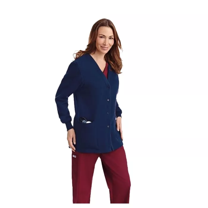 La veste de réchauffement en polaire à boutons MOBB Medical (WJF350) est une veste de style cardigan durable et confortable, conçue pour les professionnels de la santé. Elle comporte une fermeture à boutons sur le devant qui apporte une apparence professionnelle soignée, semblable à une blouse de laboratoire, tandis que le matériau en polaire douce offre une chaleur optimale pour les cliniques ou hôpitaux frais. Cette veste est idéale pour être superposée aux uniformes médicaux, offrant confort sans compromettre une apparence professionnelle. Fabriquée à partir d'un mélange de polaire de haute qualité, 65 % polyester et 35 % coton, elle combine la résistance et la propriété infroissable du polyester avec la respirabilité du coton pour une tenue durable. Le résultat est un vêtement "lavez et portez" qui résiste aux lavages fréquents et conserve sa forme et sa couleur au fil du temps.