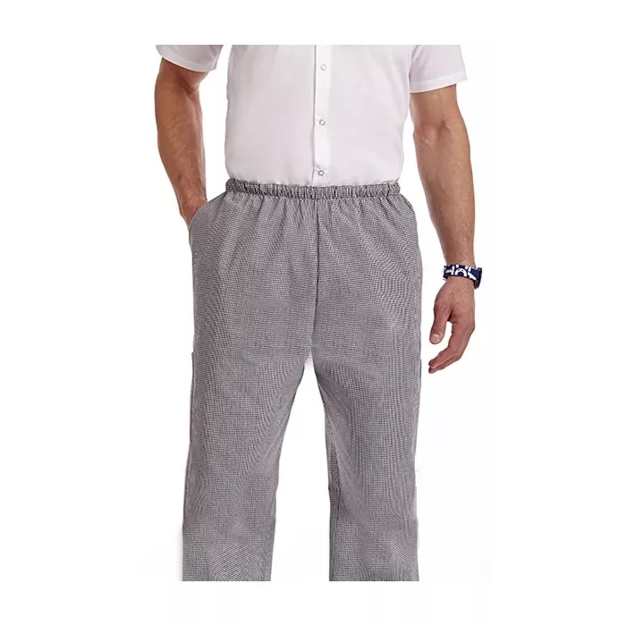 The MOBB® Woven Chef Pant features a relaxed fit with ample room in the hip and thighs and a slightly tapered ankle.