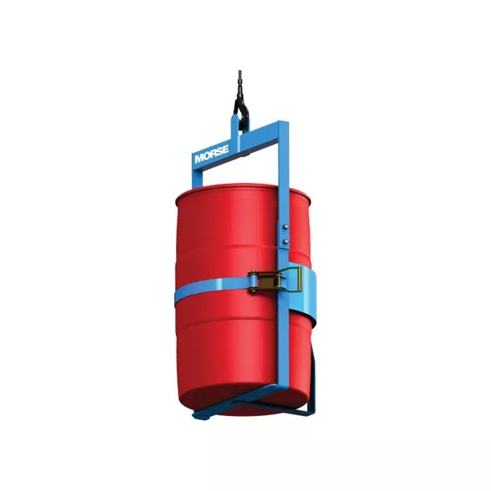 - Se fixe à un monorail, une grue ou un palan et transporte le baril chargé en position verticale