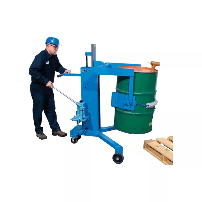 - Conçu pour soulever et incliner les barils de 55 gallons US dotés d'un rebord qui peut atteindre une hauteur de 26" lorsque portés à l'horizontale et pour palettiser ou retirer les barils des palettes
