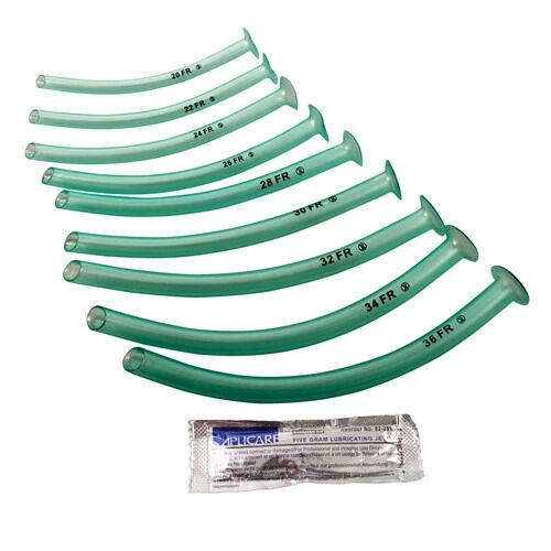 Nasopharyngeal Airway Kit includes multiple soft, moveable airways with lube jelly.