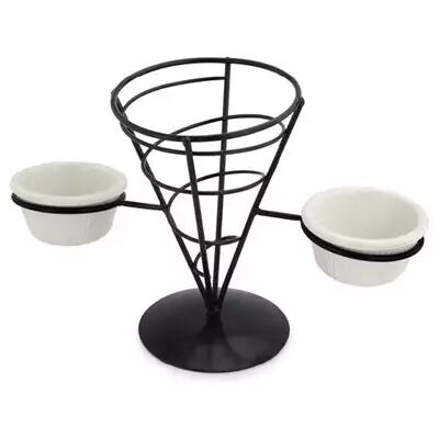 1 Cone, Two 2 oz/ 60 ml Ramekins Holder, Black Wire