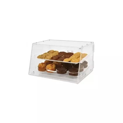 Our sturdy acrylic display cases provide clear view of your freshly baked goods. They feature magnetic-latching rear doors, removable trays and white handles. They are designed for easy restocking and cleaning. Item om80567 & om80569 come with front doors that to ensure your customers have easy access to your delicious pastries anytime. Ideal for cafes, catering companies, concession stands, and more.