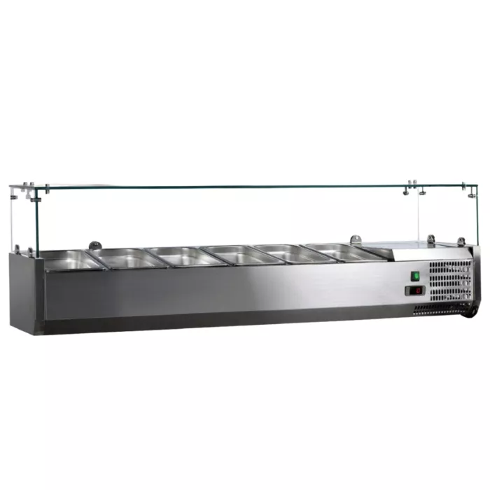 These refrigerated topping rails are perfectly designed to store and keep all ingredients fresh to a certain temperature holding time. Easy to accommodate various combination size of plastics or stainless steel table pans.