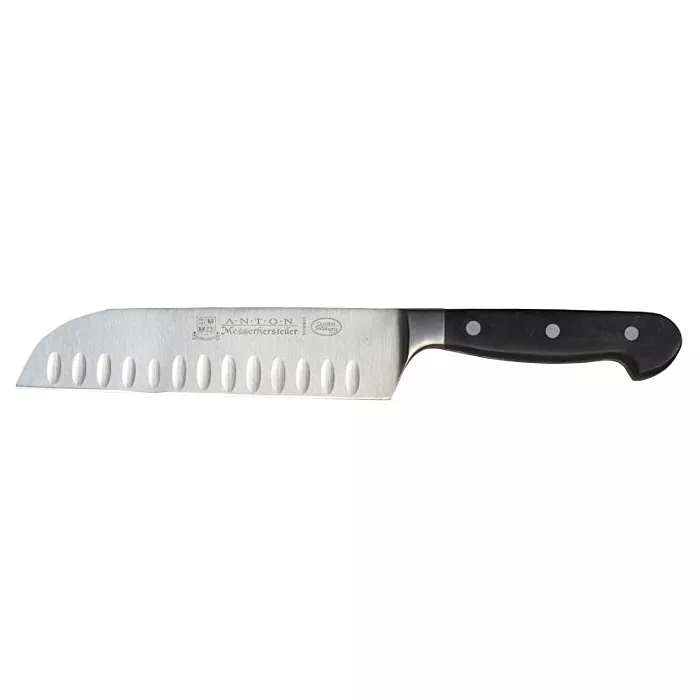 7" Forged G- Edge Santoku, Premium Anton. Black Handle.