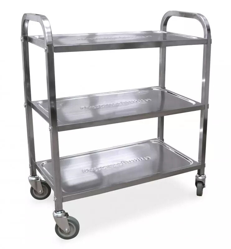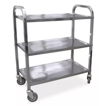 Durable stainless steel carts with 3 shelves. Stainless Steel Construction. Tray Size: 27.25" x 15.75".