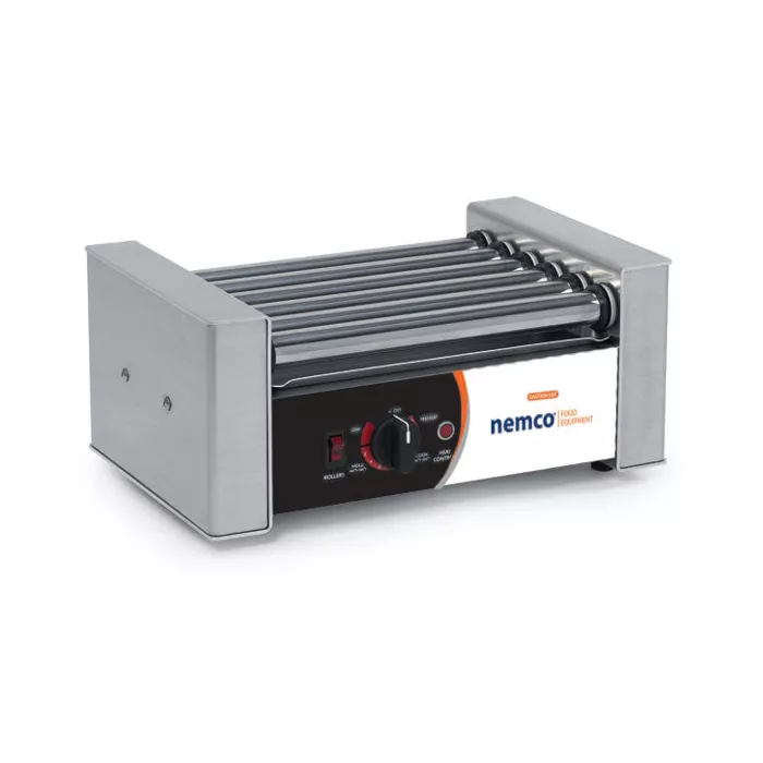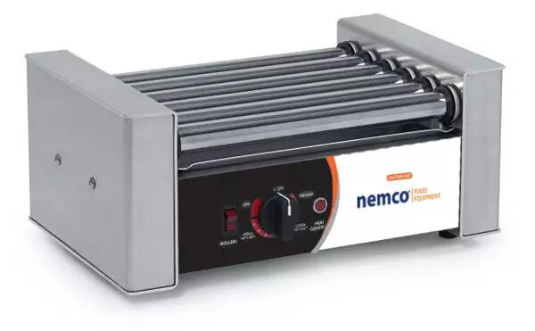 Let profits roll! Everybody loves a NEMCO Roller Grill hot dog. Plus, these surprisingly versatile machines are also great for such ethnic favorites as egg rolls and tamales. The 360° roller rotation prevents residue buildup, while individual roller heating elements ensure heating consistency. Removable drip pan makes for easy cleaning. Electric power requires no ventilation system. Seven heat settings offer convenient temperature control. For optimum roller performance capability, look for GripsIt models that include SilverStone with grip and abrasion-resistant additive.