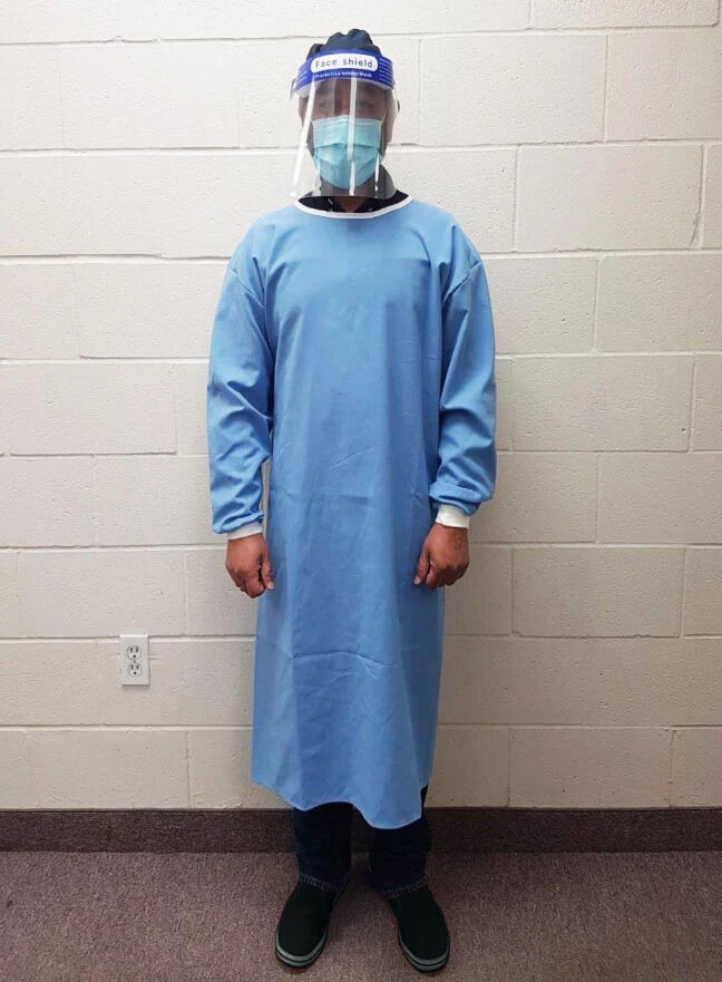 Non-Surgical Isolation gown with knit cuff. Ties at the back with two closures.