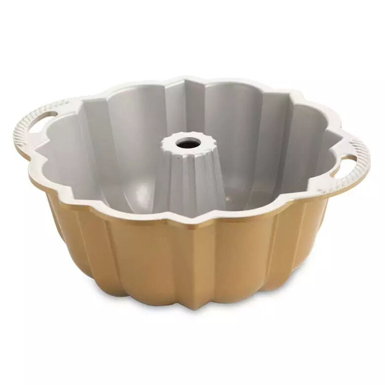 The Anniversary Bundt® Pan is Nordic Ware's beloved and iconic original Bundt® design. This pan's versatile size, shape and crisp details work well with present day 10-15 cup Bundt® mixes and recipes because of the narrow base, straight sides and extra large center tube. The alternate vertical flutings make slicing and serving clean and easy. Handles make lifting and unmolding a breeze. This is a staple for every kitchen.