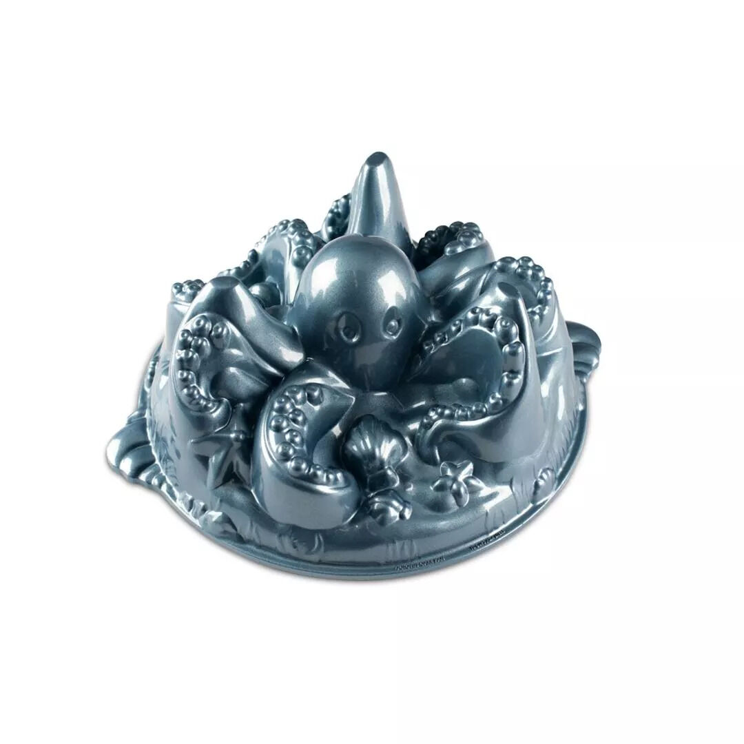 Bake something sweet from under-the-sea for beach themed parties and nautical gatherings! Eight curling limbs and seashell adornments make this darling mollusk extra special. The pan creates a cake with amazing details that can be highlighted with a simple dusting of powdered sugar-- or add piped frosting for drama and color. Crafted of cast aluminum in the USA with nonstick for easy release and cleanup.