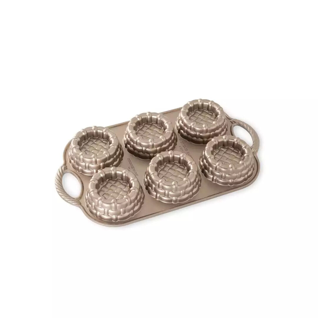 Make six beautifully detailed, 1/2-cup shortcakes or molded gelatin cups for special desserts, salads or entrees using this versatile pan. What fun to serve a delightful strawberry shortcake dessert - the shortcakes look like little baskets! Everyone will be impressed with your delicious dessert. Proudly made in the USA by Nordic Ware.