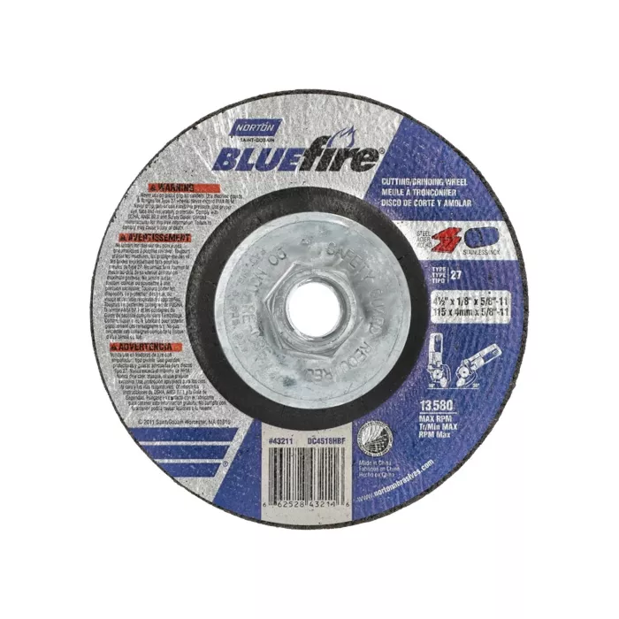 - Meule de 1/8" d'épaisseur à moyeu déporté conçue pour être utilisée à un angle de 90 degrés sur une meuleuse à angle droit pour de diverses utilisations telles que le tronçonnage, l'entaillage et la rectification latérale légère