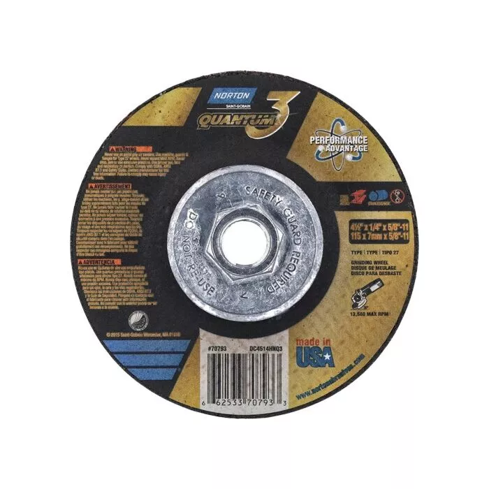 - Meule de 1/4" d'épaisseur pour la rectification à la main des aciers inoxydables et des aciers au carbone durs et tendres de la série 400, ainsi que pour la rectification des soudures et le biseautage