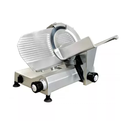 The meat slicer is constructed with high-quality European-grade materials, including anodized aluminum alloy and a powerful motor that meets European standards. These materials ensure exceptional cutting consistency and durability, so you can trust that your slices will be precise and uniform every time. The high carbon steel blades are hard chromed with a hollow ground taper, extending sharpening and blade life. This means less time and money spent on maintaining the blades, and more time for you to focus on running your business.