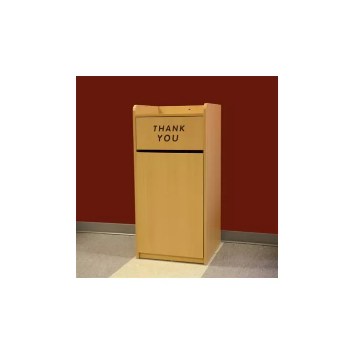 Nella’s trash receptacle with swing door provides the excellent compact solution for waste management. It is the perfect companion for restaurants, healthcare facilities, schools, offices, and hotels. Features an engraved message to reiterate the gratitude towards your customers as well as a recessed top for discarded food trays.