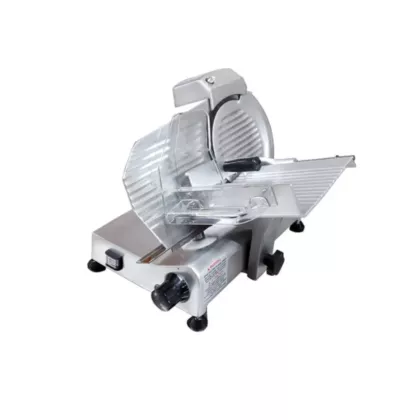 Nella slicers have anodized aluminum alloy bodies. The high carbon steel blades are hard chromed, with a hollow ground taper for extended sharpening and blade life. These belt driven machines offer exceptional cutting consistency and durability. The carriage moves smoothly on ball bearings allowing effortless cutting of deli meats and vegetables. Easy to disassemble for quick cleaning. Perfect for low volume operations. Made in Italy.