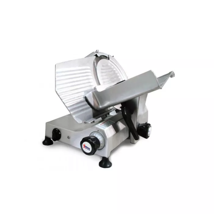 Featuring a powerful 0.35 HP motor and a massive 12" blade, this slicer offers an ample cutting capacity for all your slicing needs. And with its anodized aluminum alloy body and high carbon steel blade that has been hard chromed and hollow ground, this slicer is built to withstand the demands of daily use while ensuring exceptional cutting consistency and durability.