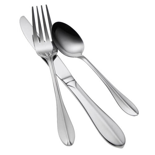 This flatware design boasts a graceful handle that crests in the middle and ends with a flourish at the tip. Like a perfectly formed leaf, this pattern provides a look of simple beauty. Durable and affordable, Rhodes can be found on tabletops across the country.