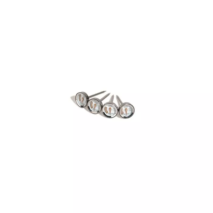 These handy steak thermometers monitor steak's internal temperature so you know exactly when to take it off the grill. This set includes four thermometers so you can precisely gauge their doneness to ensure that everyone gets their steak cooked just the way they like it. When the stakes are high... you'll need these mini gadgets.