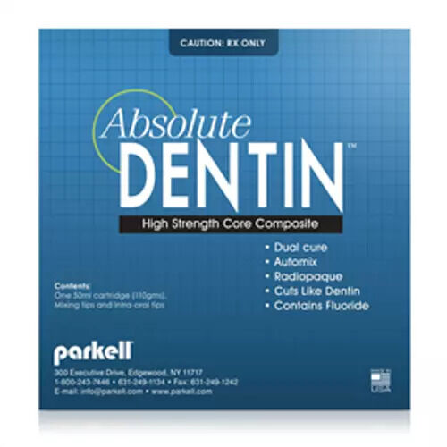 Le composite pour noyau Parkell Absolute Dentin est un matériau de reconstitution de noyau haute performance à polymérisation duale conçu pour fournir une résistance et une durabilité supérieures aux restaurations dentaires. Ce matériau composite est idéal pour créer des fondations solides et fiables pour les couronnes et autres procédures restauratrices. Le kit comprend une cartouche de 50 ml de matériau composite en teinte dent, assurant une intégration naturelle et homogène avec les dents existantes du patient.