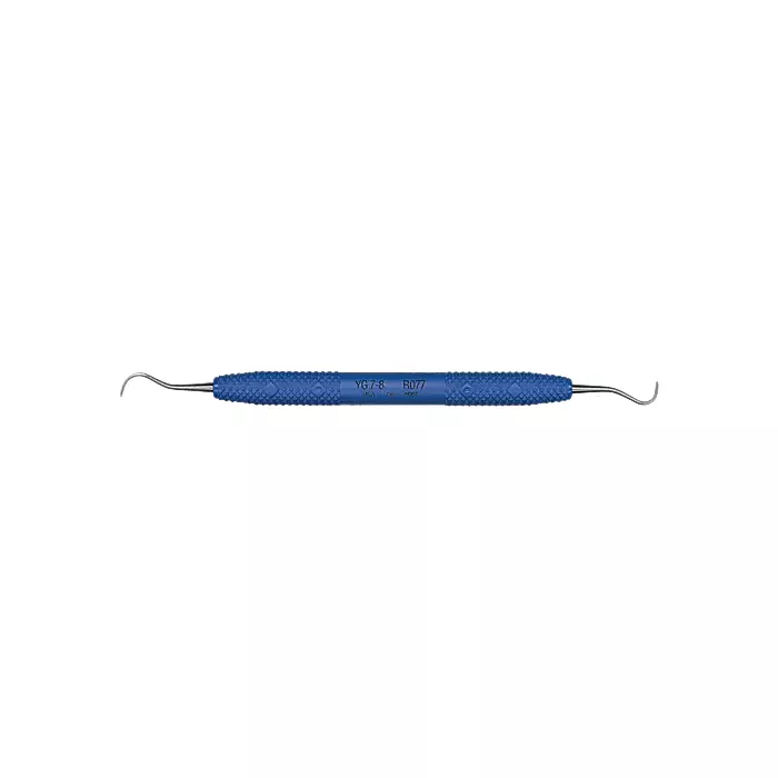 Universal curette with two cutting edges and a round toe for use on all surfaces. PDT instruments are ideally weighted, featuring the most ergonomic handle with knurling to the instrument shank to provide increased comfort with less hand fatigue and pinch. PDT's focus on ergonomics greatly reduces the development of musculoskeletal disorders.